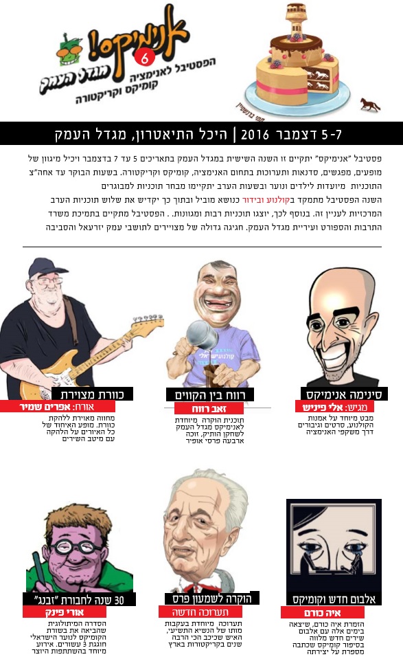 האירוע הראשון יתקיים כבר בתחילת החודש בין ה5-7 לדצמבר כאשר יארח בפעם השישית את הפסטיבל המצליח "אנימיקס- לאנימציה קומקיס וקריקטורה" שיצדיע השנה בין היתר לקולנוע הישראלי ויארח אירועים, תערוכות וסדנאות לכל המשפחה.