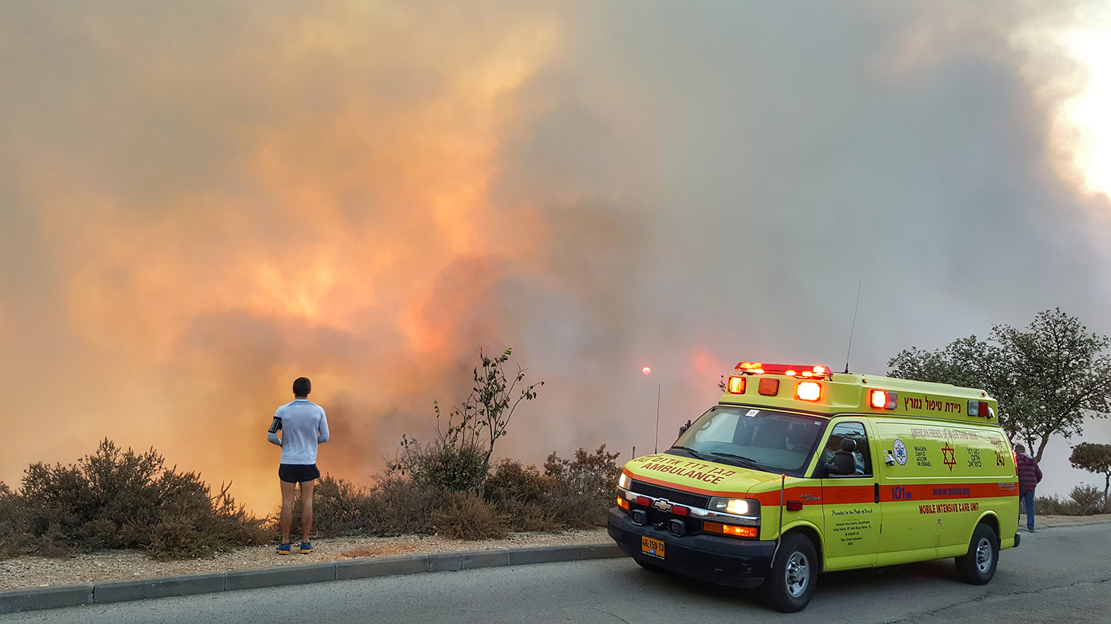 סמנכ"ל רפואה במד"א, ד"ר רפי סטרוגו: "אנחנו ממליצים לאזרחים הנמצאים בקרבת אזורי השרפות והעשן הסמיך, להישאר בבית ולהימנע ככל הניתן מלהגיע לאזור השריפה על מנת להימנע משאיפת עשן וזיהום האוויר הכבד. רצוי לסגור את התריסים ואת החלונות, ולא להדליק מזגן. בכל צורך רפואי יש לחייג 101 למוקד החירום של מד"א, שם יתדרכו החובשים והפאראמדיקים שבמוקד מה לעשות עד הגעת צוותי מד"א למקום".