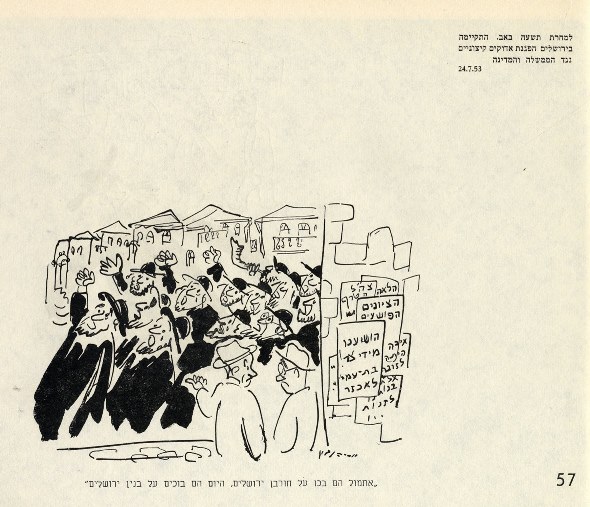 הסוגיות העולות מן הקריקטורות הן הישנות והן החדשות מתייחסות לנושאים אקטואליים, כמו גם נושאים שעמדו בראש סדר היום הציבורי של ירושלים במהלך ההיסטוריה. כל הקריקטורות יחדיו מציגות באופן סאטירי את פניה הרבות והמגוונת של העיר ירושלים על בעיותיה , מורכבותה וקסמה.