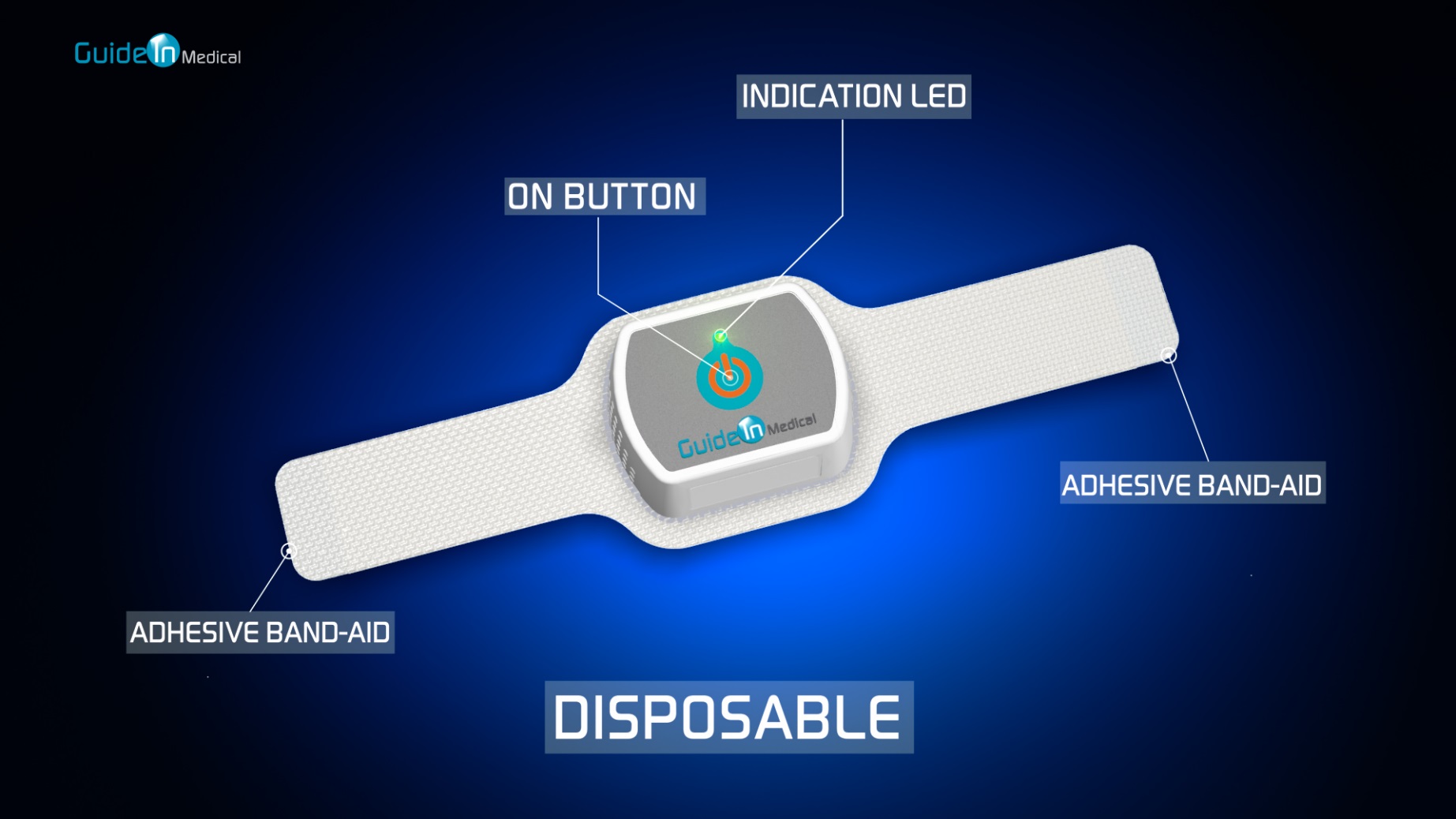 גייד אין מדיקל פיתחה התקן חיצוני, המוצמד כמדבקה על צוואר המטופל ומעביר לתוך הרקמות אור באורך גל מסוים, אשר מאיר את פנים הגרון. התאורה המיוחדת, אשר מהבהבת בצורה ברורה, מקלה על הצוות הרפואי בזיהוי קנה הנשימה כשהוא נעזר בווידאו לרינגוסקופ (מכשיר עם מצלמת וידאו) ומנווט בקלות רבה יותר את החדרת צינור ההנשמה במהלך האינטובציה. מדובר בהתקן חד-פעמי שעלותו מוערכת בכ-35 דולר ליחידה.