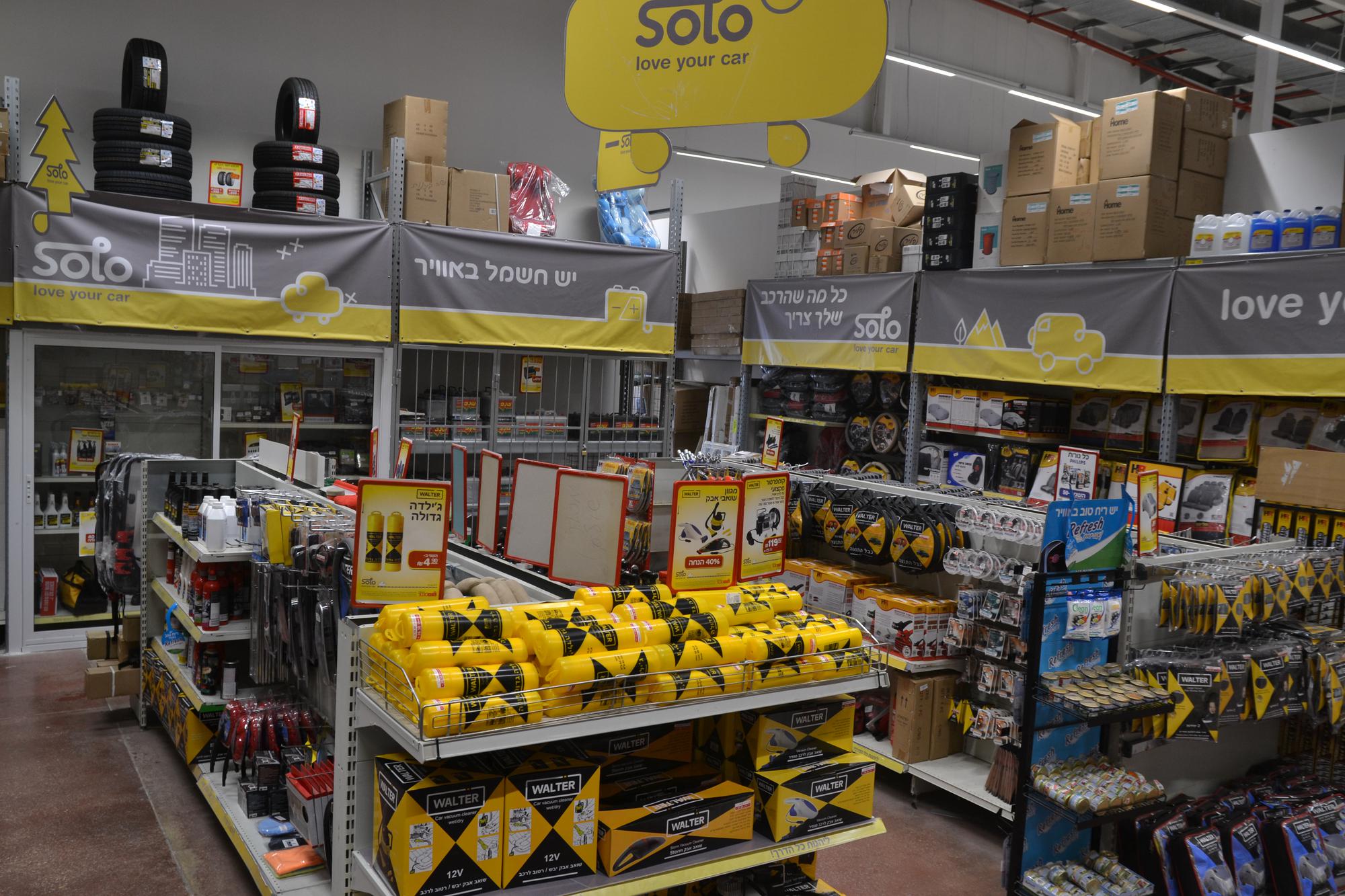 ברשת solo ניתן למצוא שלל מוצרים לרכב באיכות בלתי מתפשרת ובמחירים אטרקטיביים במיוחד. בין המבחר העצום של הפריטים מוצעים בסניפי הרשת בוסטרים לילדים בכל הגילאים, מערכות מולטימדיה מתקדמות ומסכים לרכב, מבחר שמנים נוזלים ותוספים, מצברים, מוצרי טיפוח, ריפודים ושטיחים בצבעים ועיצובים מגוונים, גגונים, מנשאי אופניים, מגני שמש, וילונות, ערכות עזרה ראשונה, מגבים לרכב, מראות, כיסויים לרכב, נורות ואף צמיגים.