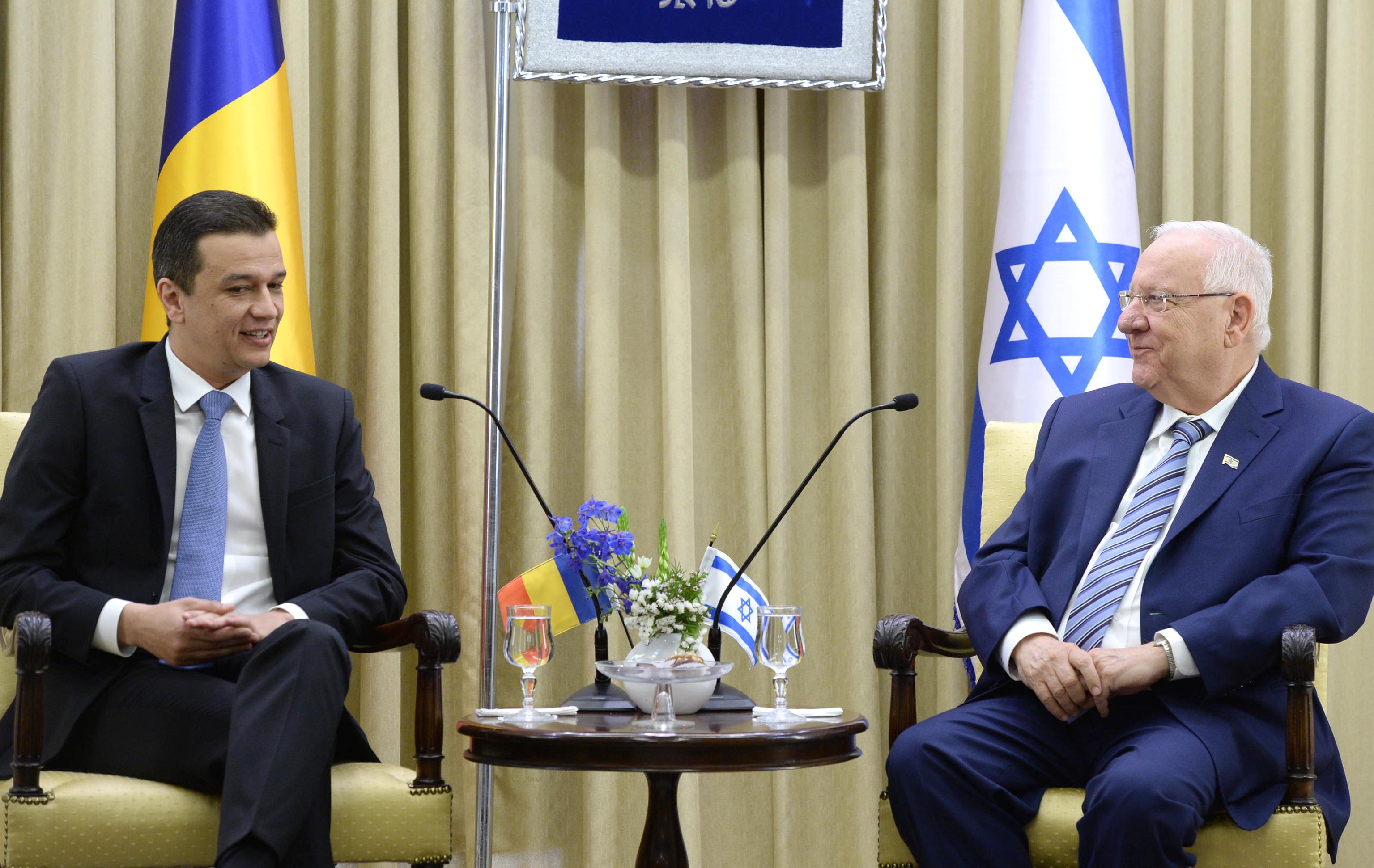 הנשיא בירך את ראש ממשלת רומניה עם הגעתו וציין כי אנו רואים חשיבות בבחירתו בישראל כמדינה הראשונה בה הוא מבקר מאז כניסתו לתפקיד. בדבריו התייחס הנשיא לשיתופי הפעולה הרבים בין המדינות ואמר: "היחסים בין שתי המדינות שלנו מחייבים קשר מתמיד ואנו שמחים על שיתוף הפעולה בעשורים האחרונים". עוד אמר הנשיא: "אנו פועלים רבות יחד בכל הקשור במוכנות כולנו לקדם פני רעות שעלולות להתרחש בכל חברה בעולם כולו. היחסים בין רומניה וישראל, ובין החברה ברומניה והחברה בישראל, בהם גם היחסים המסחריים, בנויים על שני אדנים, ממשלה לממשלה ועסקים מול עסקים."