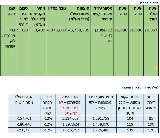 המחיר התחלתי לדירת 85 מ"ר יעמוד על 994,659 ש"ח.