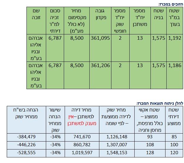 המחיר התחלתי לדירת 120 מ"ר יעמוד על 1,365,011 ₪.