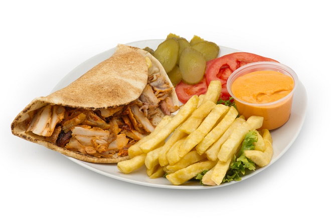 מומלץ לשלב את המנה עם טחינה, אמבה, חומוס, סלט ירקות, סלט בצל עם סומק ופטרוזיליה וחמוצים. ניתן לאכול את המנה בצלחת, בפיתה או בטורטייה.
